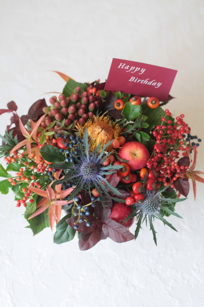 ビューティフルボーイでそんな秋の実物ばかりを入れたアレンジメントをご用意していますよ。
